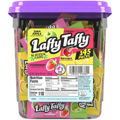 Tub contains 145 wrapped Wonka Laffy Taffy Candy Chunks.